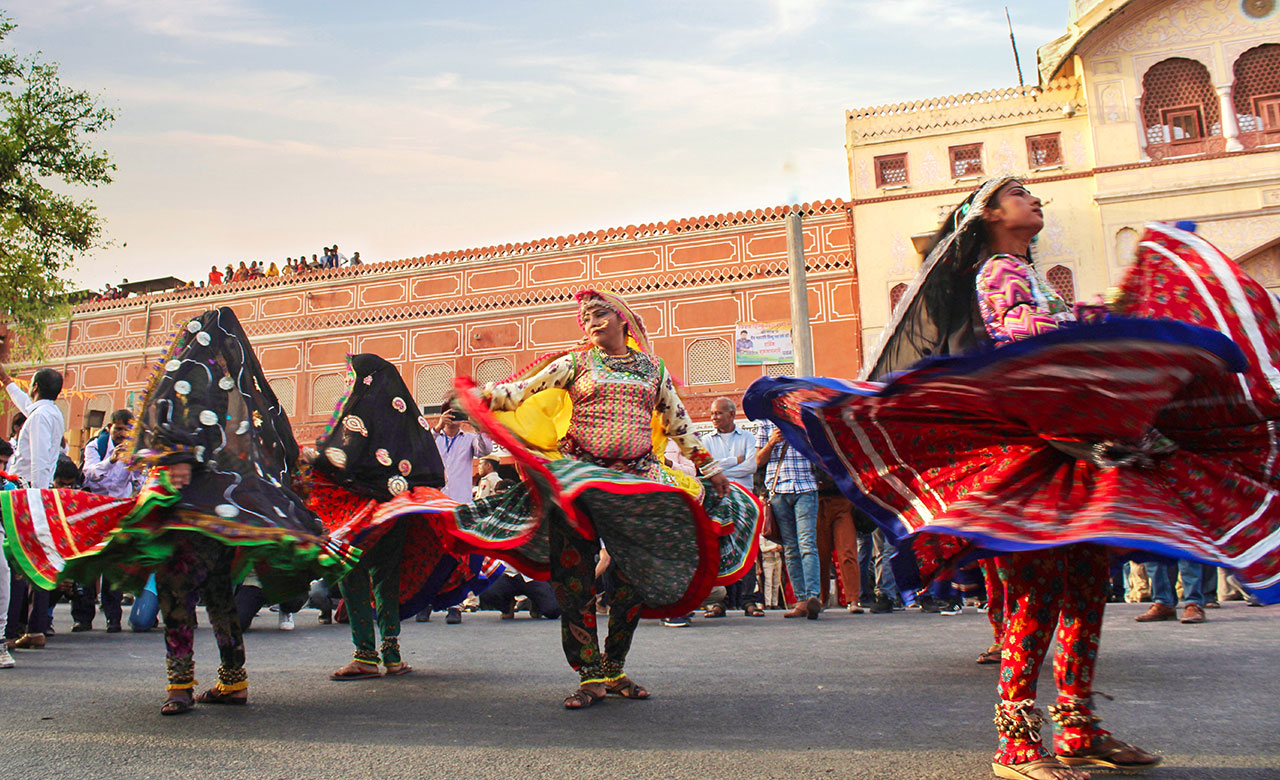 Gangaur is a festival of spring, harvest and marital fidelity celebrated all over Rajasthan. But it is particularly impressive in Udaipur with the Lake Pichola as the backdrop of the festival. It is a time for women in Rajasthan to dress up in their best clothes and participate in the festival dedicated to the divine couple of Lord Shiva and Goddess Gauri. A vow is observed by married women for marital bliss and young girls for ideal husband. Women carry clay idols of Lord Isar (Shiva) and Goddess Gauri (Parvati) in a ceremonial procession singing Gangaur songs, starting at Jagdish Chowk and ending in Gangaur Ghat by the Lake Pichola, where they place the idols on boats. The festival culminates with traditional artists performing folk dances and impressive fireworks.