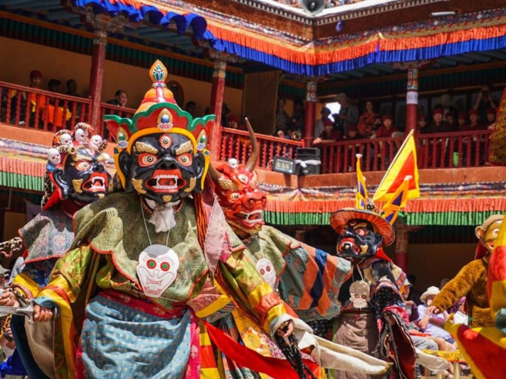 El Festival de Hemis es una vibrante celebración de dos días que tiene lugar en Ladakh, India, en honor del Gurú Padmasambhava, que introdujo el budismo tántrico en el reino del Himalaya. El patio del Monasterio de Hemis, el mayor monasterio budista de Ladakh, es el escenario de este famoso festival. El colorido desfile tiene lugar el décimo día del mes lunar tibetano. Para la ocasión, los lugareños se visten con sus mejores trajes tradicionales. Los monjes ejecutan espléndidas danzas enmascaradas y representaciones sagradas con acompañamiento de címbalos, tambores y cuernos largos. El monje jefe preside la función. Una colorida feria, en la que se exhiben hermosas artesanías, es el punto culminante de la fiesta.