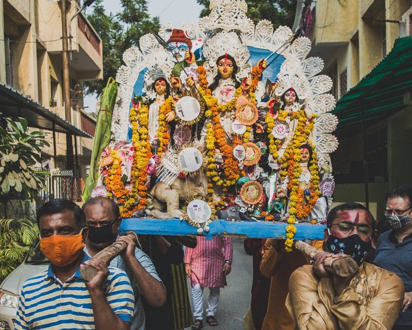 Durga Puja, uno de los festivales más significativos de la India, es una celebración de quince días en la que se rinde culto a Shakti, la divinidad femenina del hinduismo. Este festival de varios días es especialmente fascinante en Calcuta, inscrita en la lista del Patrimonio Cultural Inmaterial de la Humanidad de la UNESCO, donde todo gira en torno a exquisitos ídolos de la diosa Durga, extravagantes pandals (escenarios) temáticos, rituales, bailes, buena comida, grandes multitudes y cánticos de “Bolo Maa Durga ki Joi” (Salve Madre Durga).