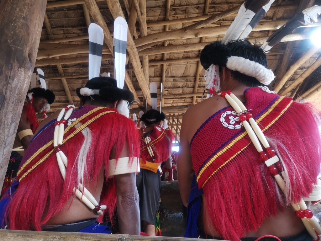 Il sito del festival offre qualcosa per tutti. Il gruppo ha apprezzato la libertà di assistere agli spettacoli, di curiosare tra le bancarelle di artigianato, le mostre d’arte e di visitare il Museo della Seconda Guerra Mondiale che si trova in loco. C’è anche una caffetteria che serve caffè espresso tostato e coltivato nel Nagaland con rotoli di cannella. Altri, come me, hanno trascorso del tempo visitando il Morung (casa di riunione) di ogni tribù. Non solo si potevano ammirare da vicino gli squisiti abiti tradizionali, ma c’erano anche persone disponibili a rispondere alle domande di chi voleva saperne di più sulle credenze e sulla cultura di una tribù. Alcuni Morung hanno anche cucine annesse che servono i piatti locali preferiti, come l’assone di maiale affumicato – yum!