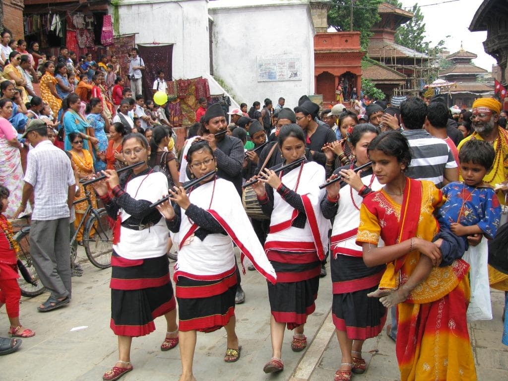 Gai Jatra celebrato dalla comunità Newari del Nepal, soprattutto a Kathmandu, Bhaktapur e Kritipur. Il festival commemora la morte dei propri cari e aiuta le famiglie a superare il lutto. Gai Jatra significa “festa della mucca” in nepalese, in quanto la mucca è considerata un animale sacro che guida le anime dei morti verso il paradiso. L’origine della festa è attribuita al re Pratap Malla, che la iniziò nel XVII secolo per consolare la regina in lutto per la morte del figlio. Invitò le persone che avevano perso i loro parenti a partecipare a un carnevale, a esibirsi in scenette e danze tradizionali e a far sentire meglio la sua regina. Da allora, la festa è diventata una tradizione che celebra la vita e la morte con gioia e dolore. In questo giorno, le famiglie dei defunti fanno sfilare una mucca o una struttura di bambù che assomiglia a una mucca lungo un percorso prestabilito. La parata è accompagnata da musica e balli.