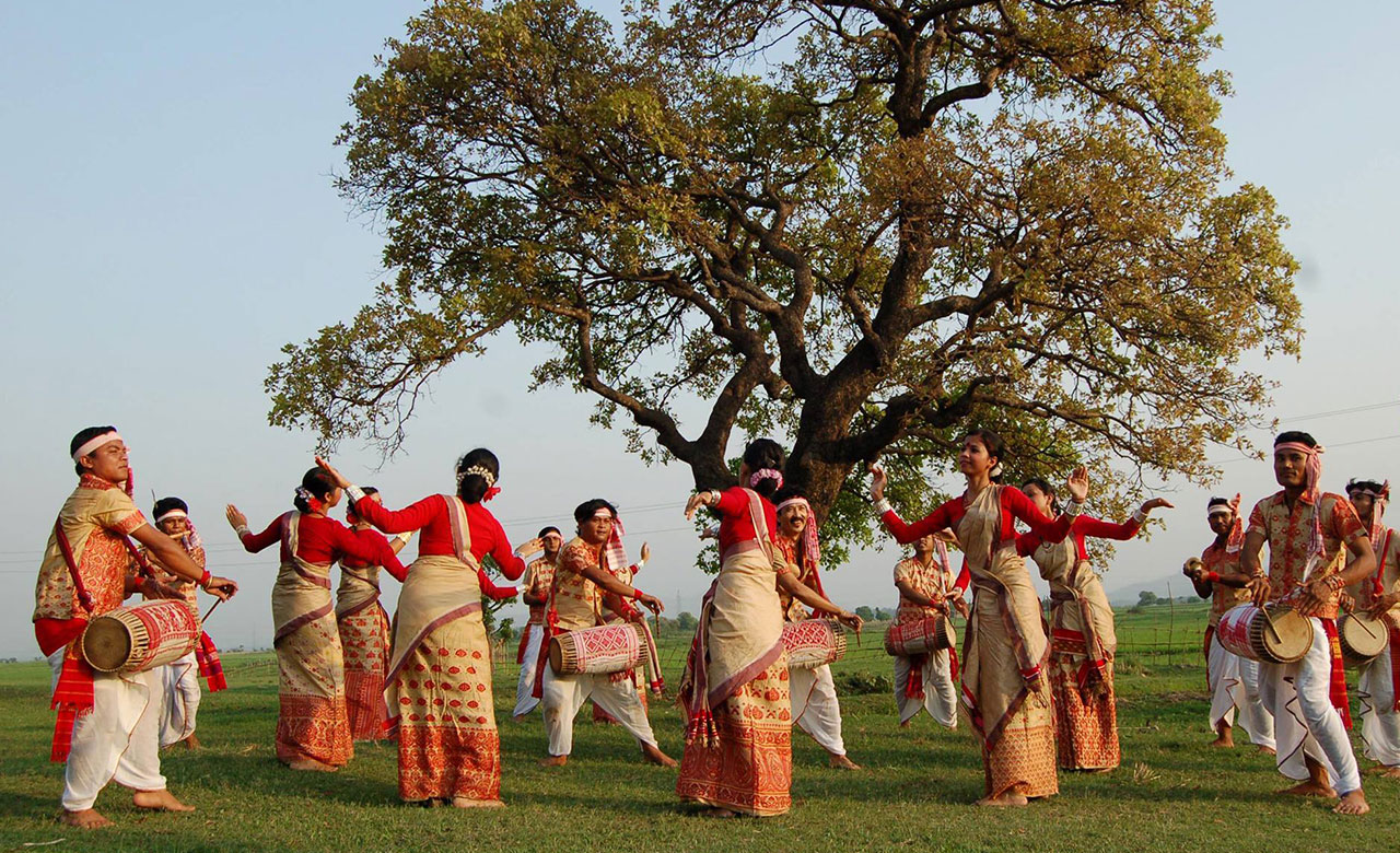 Dhool – Bohag Bihu, la festa di primavera dell’Assam, è incompleta senza il suono del Dhool, un tamburo a due teste usato nella vigorosa e sensuale danza Bihu che celebra la fertilità di Madre Natura. Nella tradizione popolare dell’Assam, il Dhool è considerato femminile a causa del suo corpo cavo (simbolo dell’utero) e della sua pelle morbida; quando i bastoni rigidi producono suoni colpendo, sfregando o pizzicando le membrane tese, è considerato un atto d’amore.
