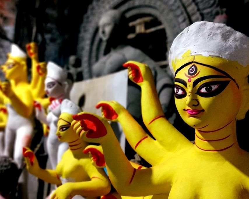 Per i bengalesi, l’autunno equivale alla felicità perché in questo periodo la “Ma” (madre) torna a casa con i suoi figli. Ecco quanto sono familiari i festeggiamenti per la Durga Puja in Bengala e per i bengalesi. È quel periodo dell’anno in cui si pianifica meticolosamente ogni giorno: come vestirsi, dove andare, chi incontrare, cosa mangiare, cosa cucinare, ecc. Non conta nient’altro. Le donne tirano fuori tutti i gioielli tradizionali e i migliori sari tradizionali che altrimenti giacciono sprecati in qualche angolo dell’armadio durante gli altri periodi dell’anno. Qui Durga, la grande uccisore di demoni, diventa zia, madre, figlia e persino amica della gente. Ci sono festeggiamenti e rituali per l’annuale ritorno a casa, come ci si aspetterebbe quando un parente amato torna a casa.